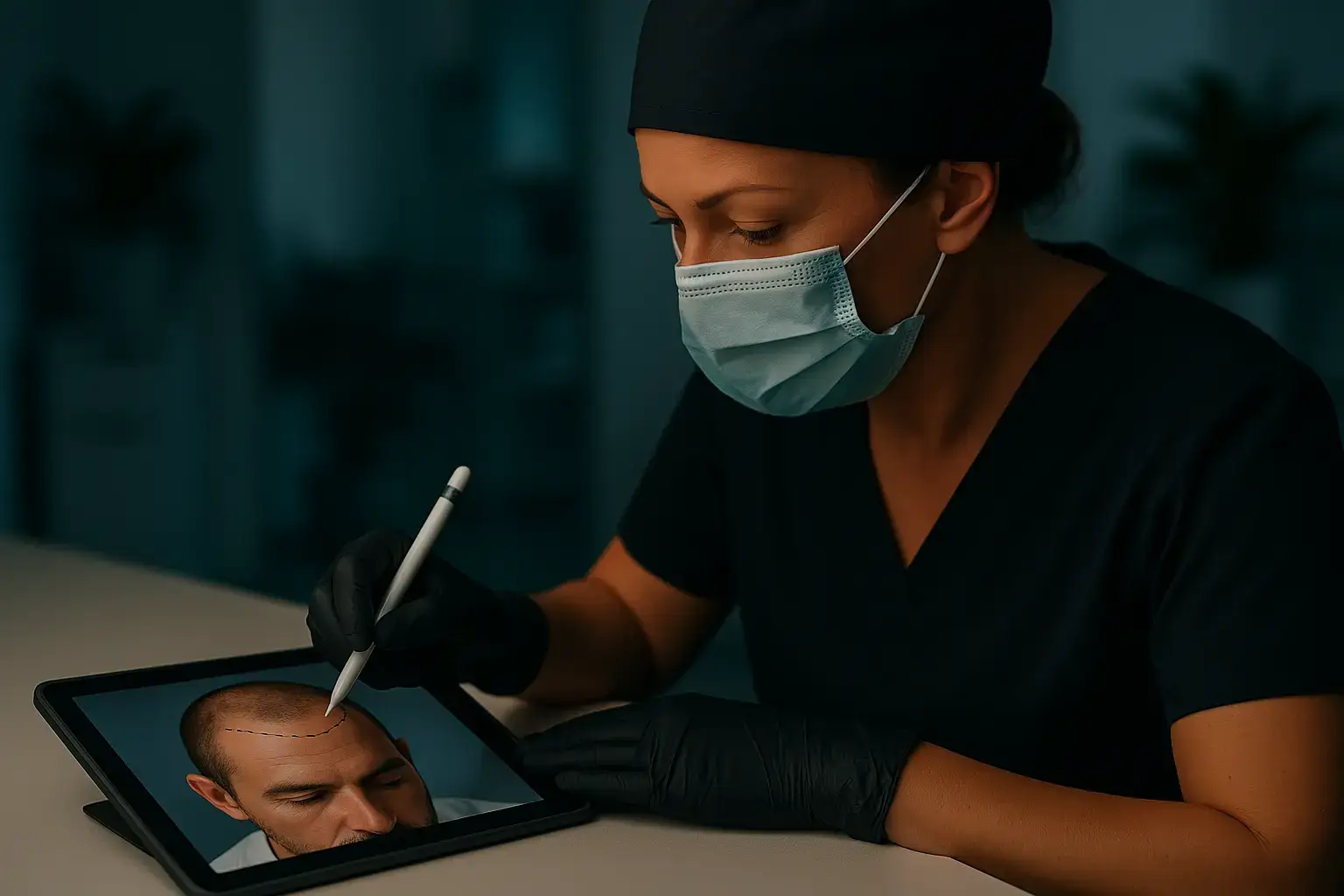 Avant chaque intervention, une préparation personnalisée est réalisée pour tenir compte du type de cheveux, de la densité capillaire et des attentes du patient, assurant ainsi des résultats durables et naturels.